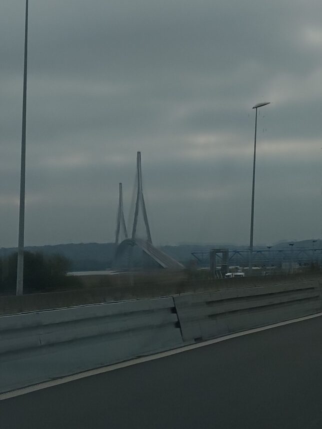 Dann ging es weiter über die A2 und die A29 an Amiens vorbei Richtung Pont de Normandie. Hier wurde immer noch gebaut und es stand je Richtung nur eine Fahrbahn zur Verfügung. Daher gab es hier einen kleinen Stau, der uns aber nicht so viel Zeit kostete wie bei der letzten Überfahrt.