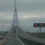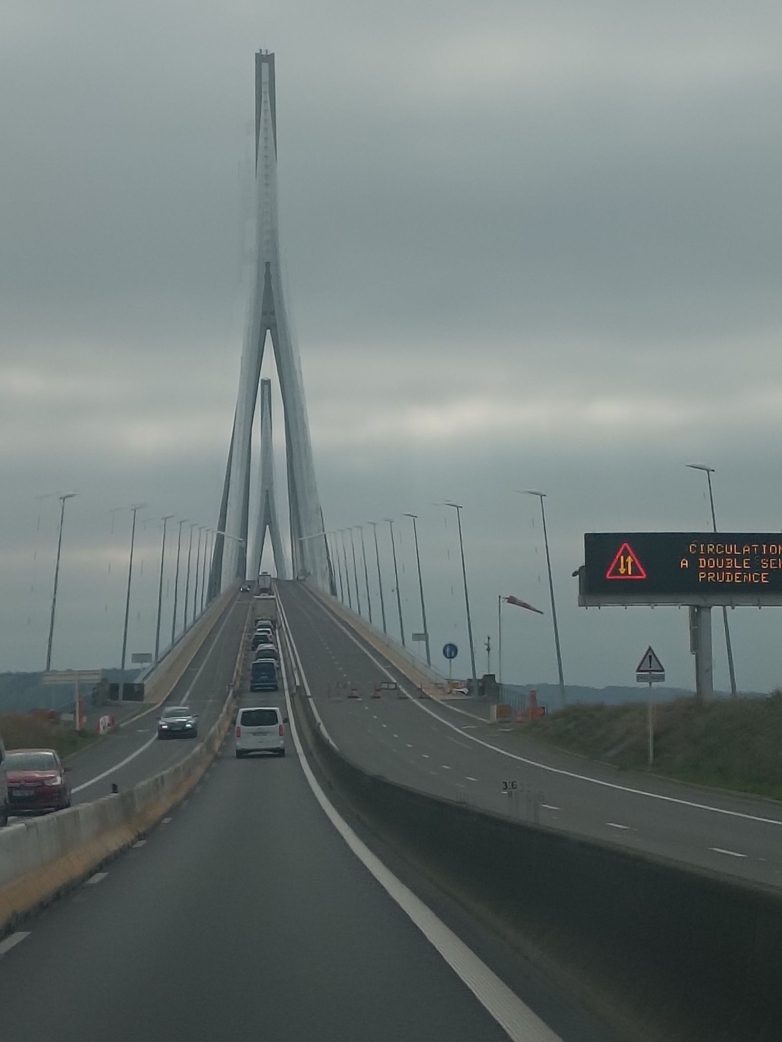 Dann ging es weiter über die A2 und die A29 an Amiens vorbei Richtung Pont de Normandie. Hier wurde immer noch gebaut und es stand je Richtung nur eine Fahrbahn zur Verfügung. Daher gab es hier einen kleinen Stau, der uns aber nicht so viel Zeit kostete wie bei der letzten Überfahrt.