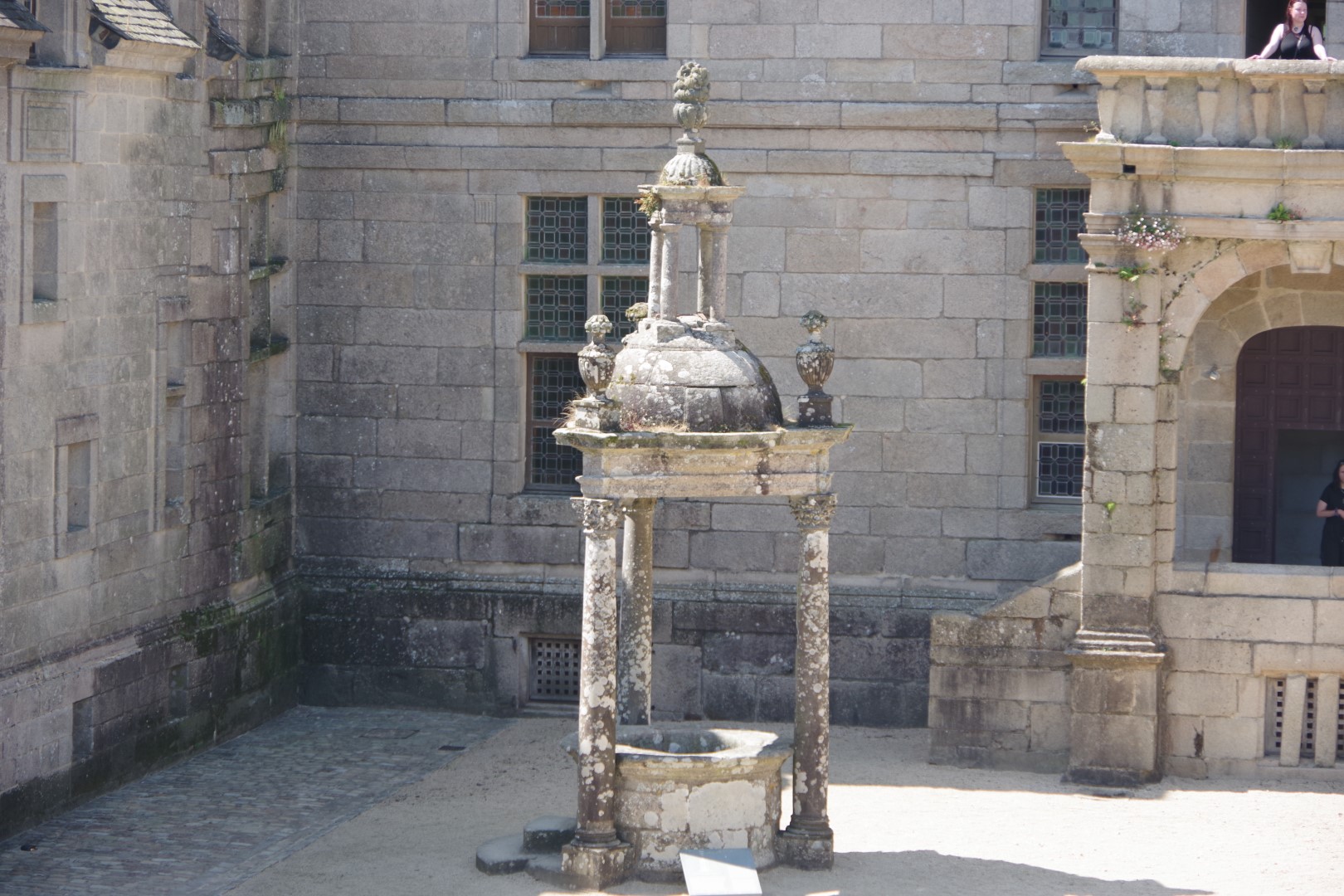 Nach Kurzer Stärkung setzten wir unseren Rundgang im Außenbereich des Château de Kerjean fort und folgten einem Weg zu einer Quelle im Wald. Dabei konnten wir auch die Rückseite des Schlosses sehr gut sehen und fotografieren, Die Quelle wurde in ein Becken mit einem kleinen Häuschen eingefasst. Dann traten wir den Rückweg zu unserem Auto an und fuhren zurück zu unserem Ferienhaus. Insgesamt ist das Château de Kerjean eine Besuch wert.